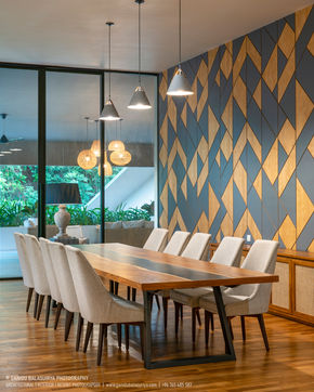 This bespoke luxury interior complements the views of beautiful vegetation outside. Combining natural wood, a soothing colur scheme and accents to add flavour it attempts to recreate tropical apartment living in a contemporary way. All furniture designs, furniture selection, colour schemes, selection of accessories, light fittings, linen and soft furnishings done by KWA Interiors.